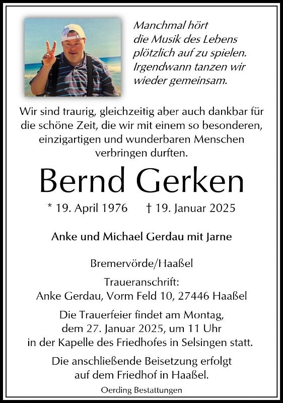 geboren am 19. April 1976 in Zeven gestorben am 19. Januar 2025 in Bremervörde