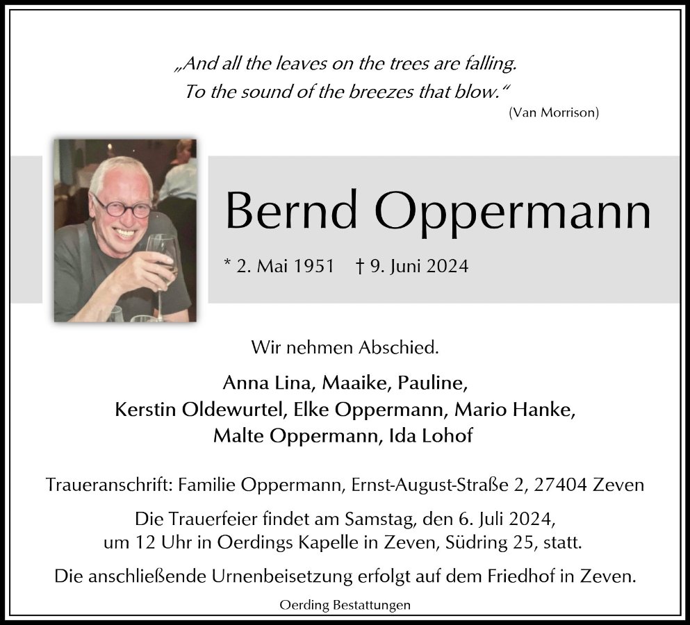 Unser herzliches Beileid zum Tode von Bernd.