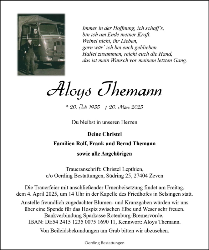geboren am 20. Juli 1935 in Visbek gestorben am 20. März 2025 in Bremervörde