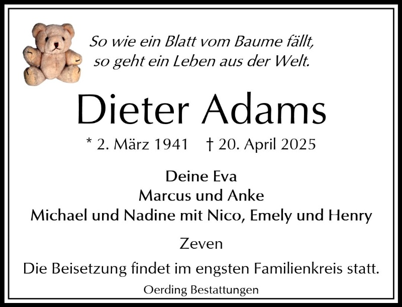 Ich habe Dich als lustigen und lieben Onkel in Erinnerung.