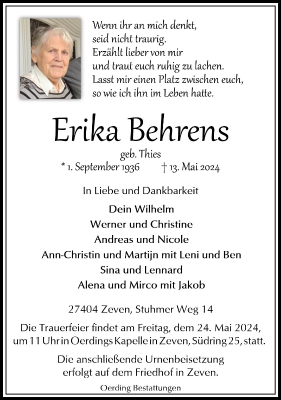 geboren am 1. September 1936 in Groß Meckelsen gestorben am 13. Mai 2024 in Zeven
