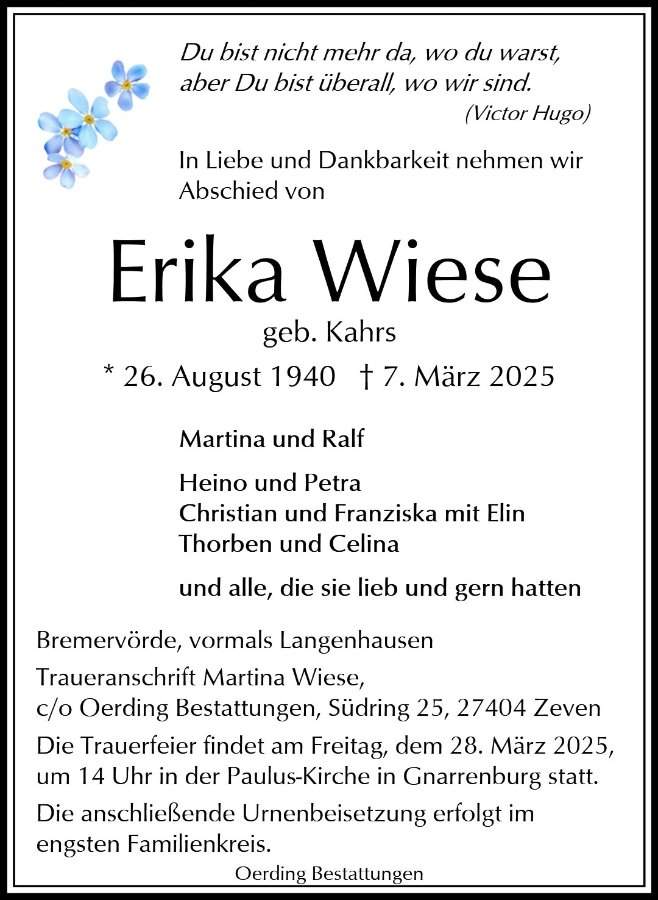 wir wünschen Ihnen von Herzen viel Kraft, dass Sie Menschen um sich haben, die Ihnen in dieser schweren Zeit beistehen und Halt geben. Zusätzlich können Sie auf dieser Gedenkseite Erinnerungen teilen und so das Andenken gemeinsam wachhalten.