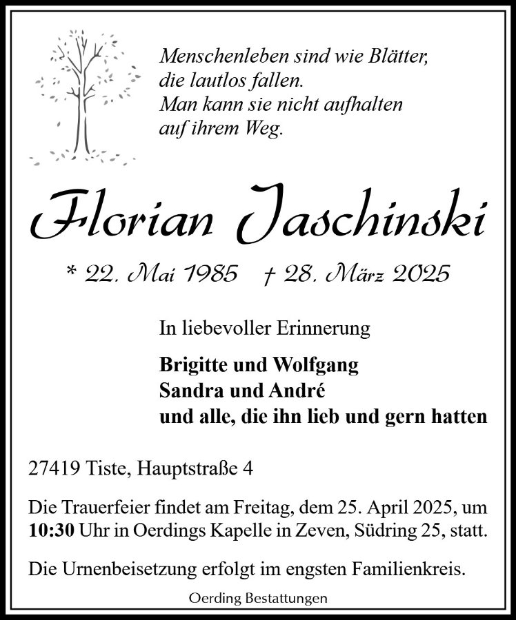 geboren am 22. Mai 1985 in Zeven gestorben am 28. März 2025 in Rotenburg (Wümme)