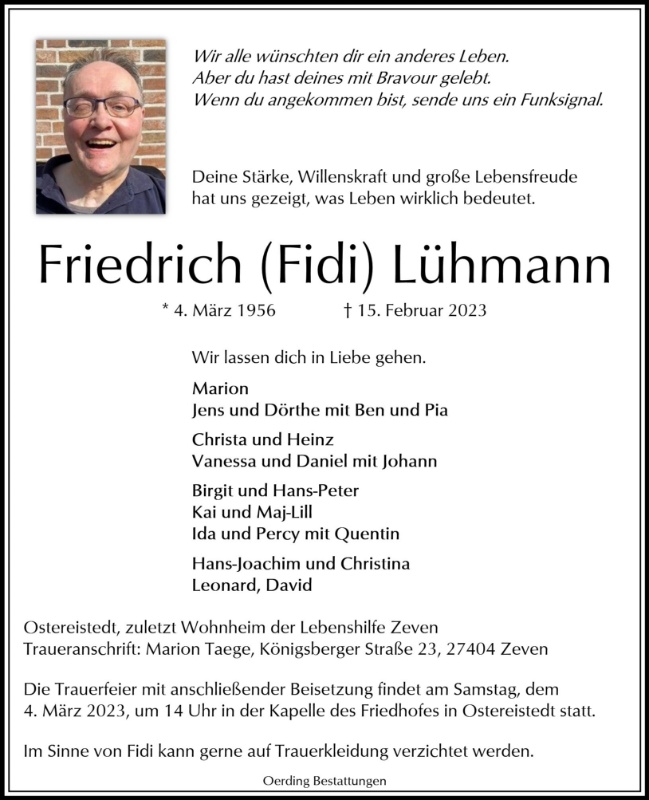 Mach' s gut Fidi, du warst und bist ein besonderer Mensch.
