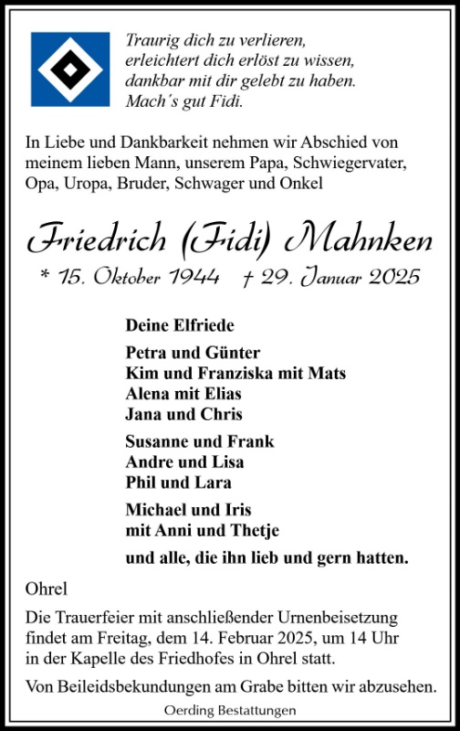 geboren am 15. Oktober 1944 in Elsdorf gestorben am 29. Januar 2025 in Bremervörde