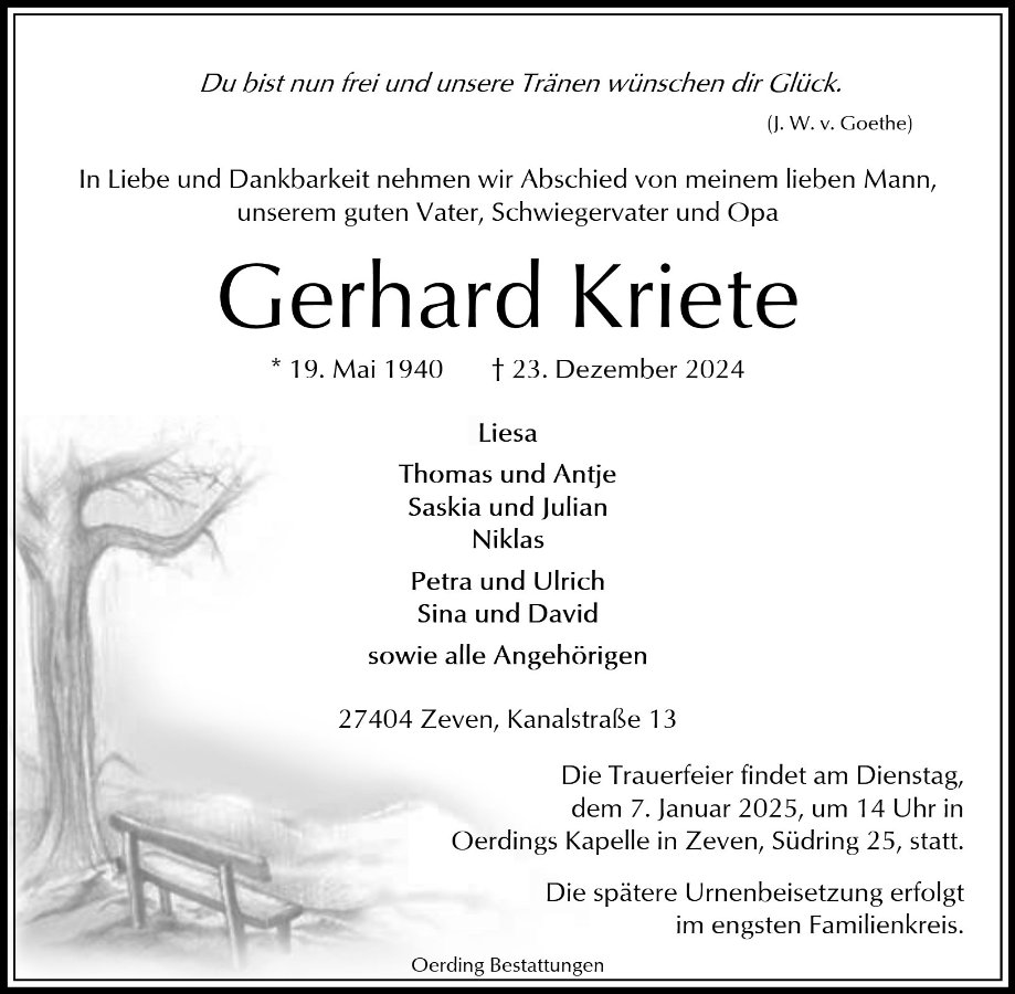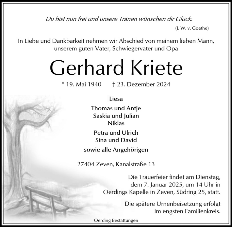 geboren am 19. Mai 1940 in Heeslingen gestorben am 23. Dezember 2024 in Rotenburg (Wümme)