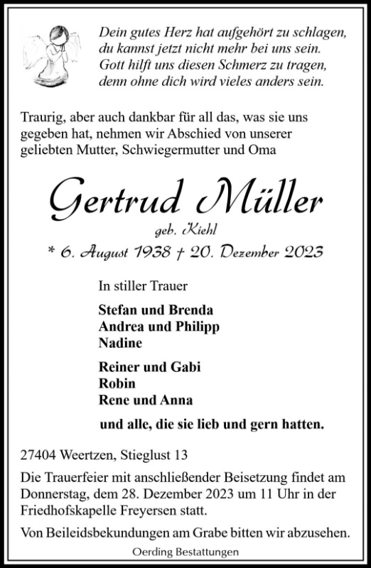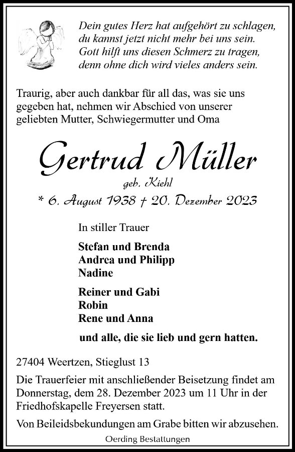 geboren am 6. August 1938 gestorben am 20. Dezember 2023 in Weertzen