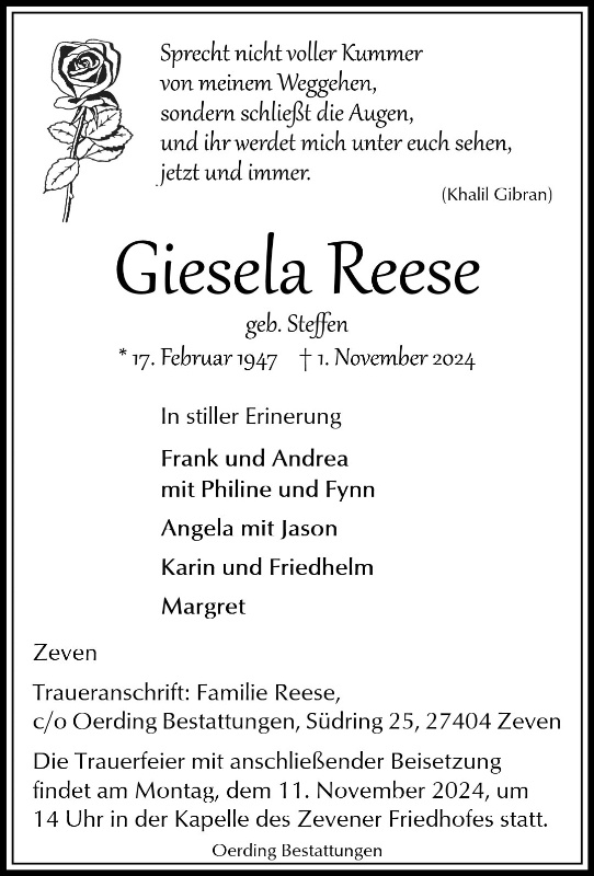 geboren am 17. Februar 1947 in Zeven gestorben am 1. November 2024 in Rotenburg (Wümme)