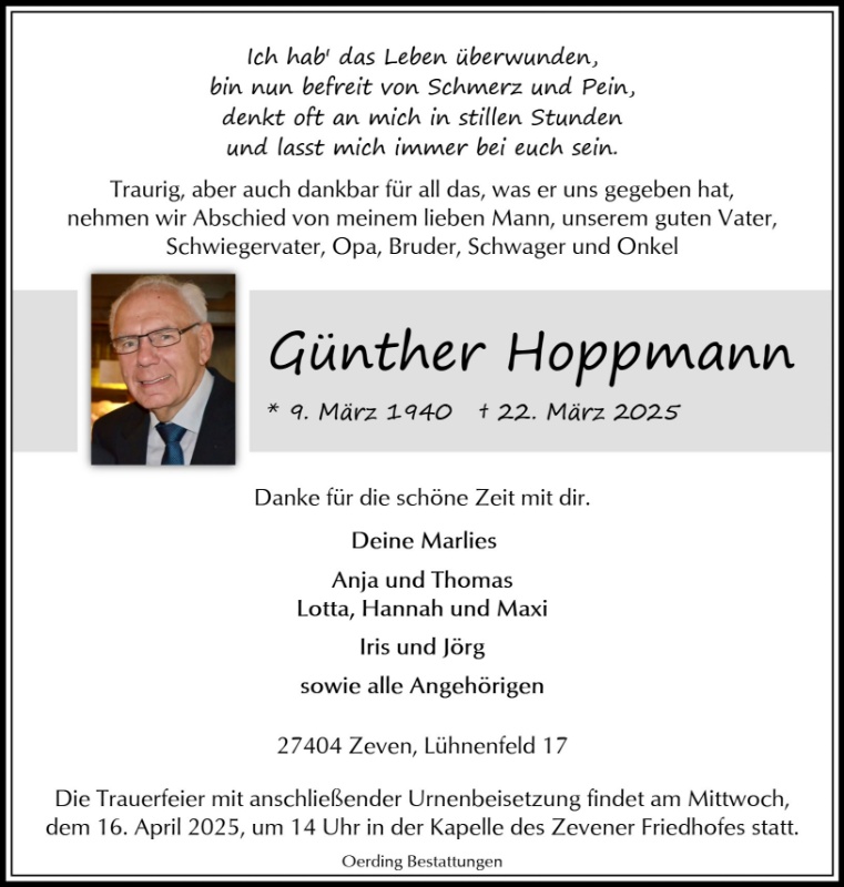 geboren am 9. März 1940 in Zeven gestorben am 22. März 2025 in Zeven
