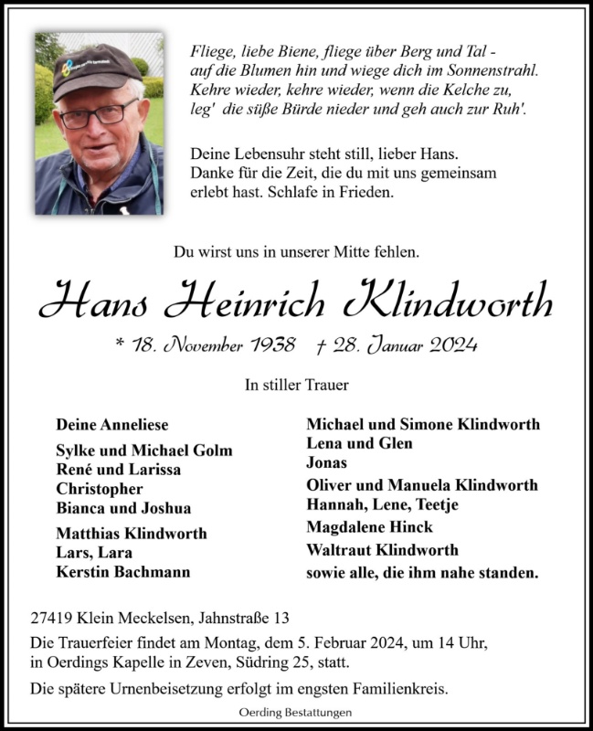 geboren am 18. November 1938 in Klein Wohnste gestorben am 28. Januar 2024 in Stade