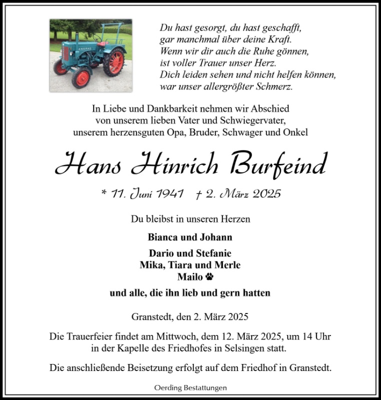 geboren am 11. Juni 1941 in Granstedt gestorben am 2. März 2025 in Bremervörde