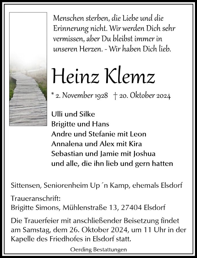 geboren am 2. November 1928 in Roggow gestorben am 20. Oktober 2024 in Rotenburg (Wümme)
