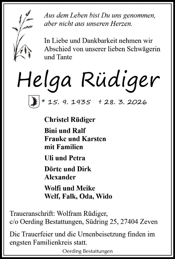 geboren am 15. September 1935 in Allenstein gestorben am 28. März 2026 in Stade