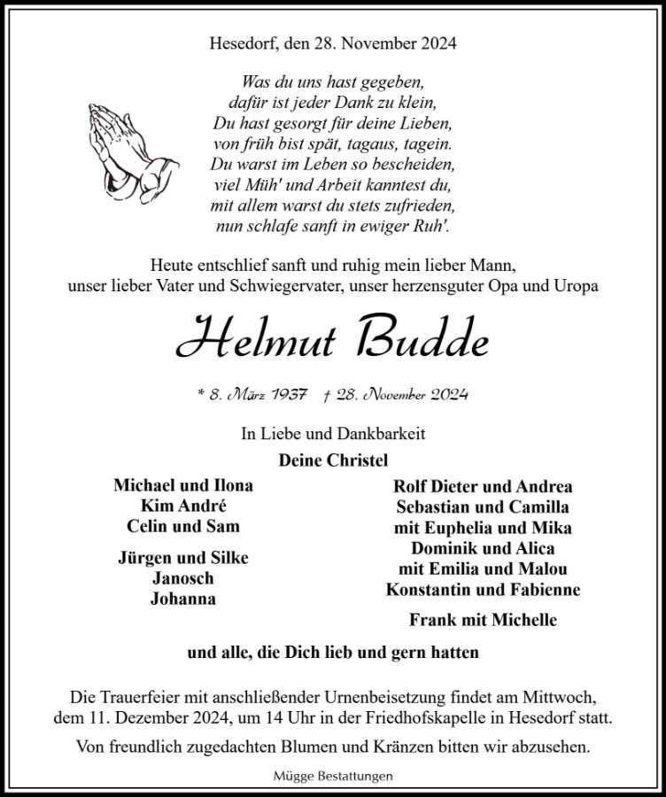 geboren am 8. März 1937 in Borchelhof gestorben am 28. November 2024 in Hesedorf