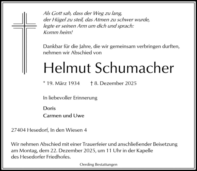 geboren am 19. März 1934 in Hesedorf gestorben am 8. Dezember 2025 in Scheeßel