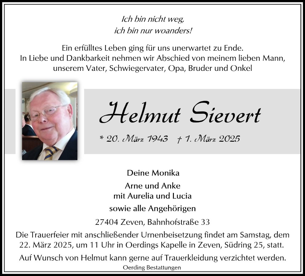 Zum Tode von Helmut möchten wir Dir unsere tiefstes Mitgefühl aussprechen