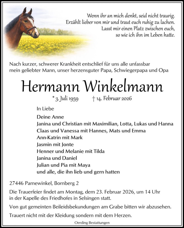 geboren am 3. Juli 1959 in Parnewinkel gestorben am 14. Februar 2026 in Bremervörde
