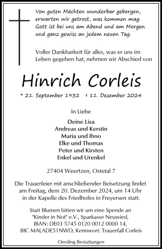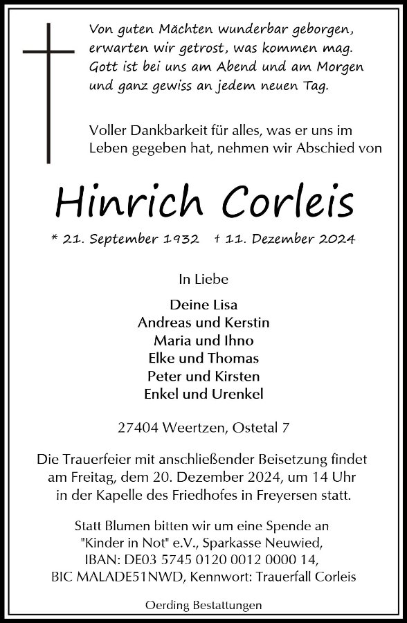 geboren am 21. September 1932 in Ottendorf gestorben am 11. Dezember 2024 in Weertzen