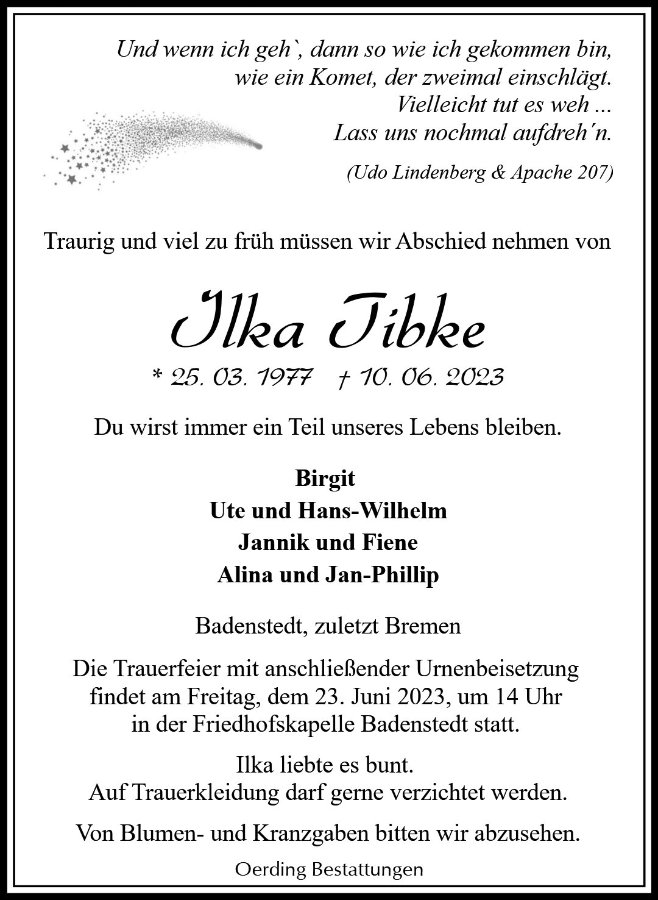 geboren am 25. März 1977 in Zeven gestorben am 10. Juni 2023 in Lilienthal