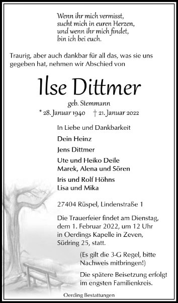 geboren am 28. Januar 1940 in Sittensen gestorben am 21. Januar 2022 in Rüspel