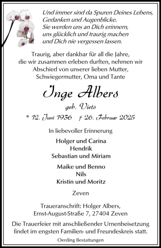 geboren am 12. Juni 1936 in Zeven gestorben am 26. Februar 2025 in Bremervörde