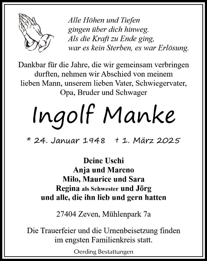 geboren am 24. Januar 1948 in Tribsees, Kr. Stralsund gestorben am 1. März 2025 in Zeven