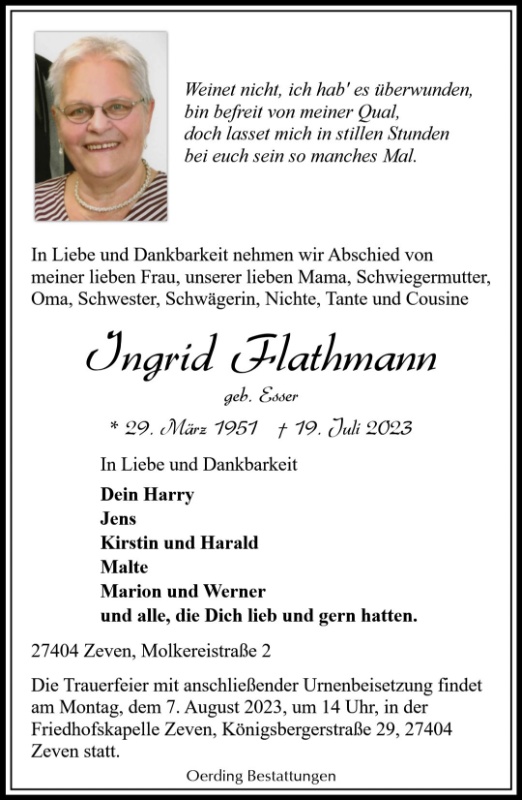 geboren am 29. März 1951 in Hambergen gestorben am 19. Juli 2023 in Rotenburg (Wümme)