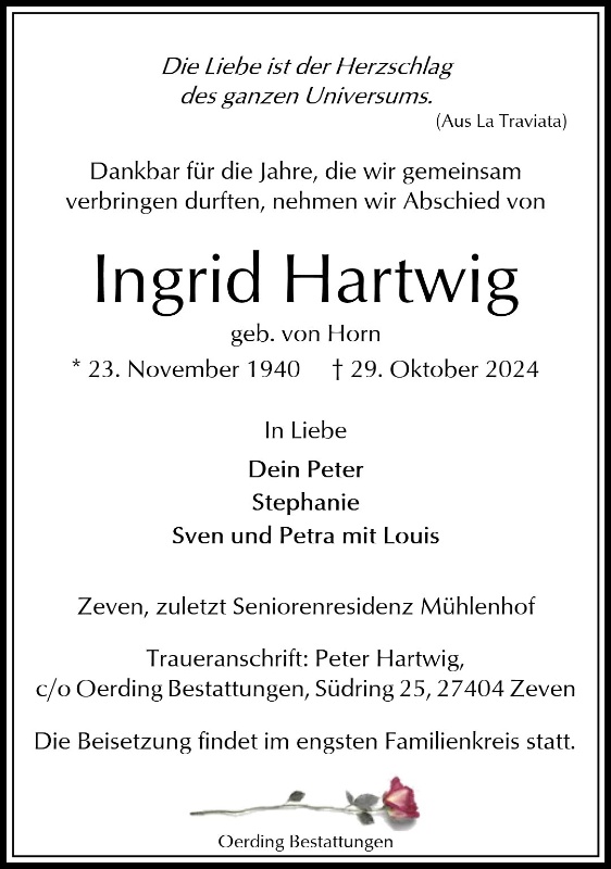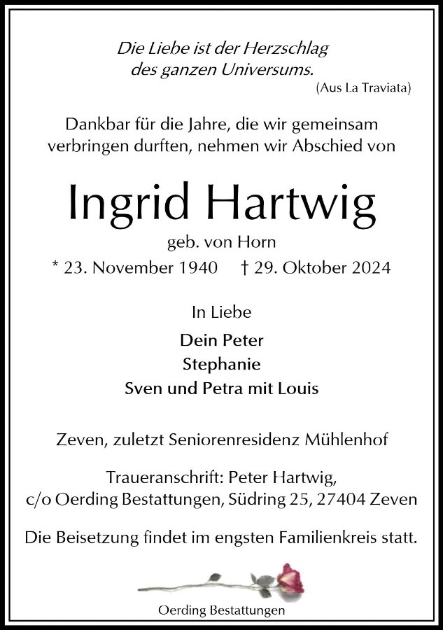 geboren am 23. November 1940 in Liegnitz gestorben am 29. Oktober 2024 in Zeven
