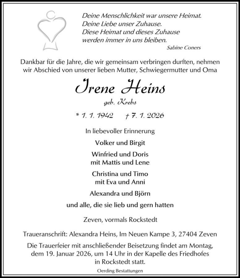 geboren am 1. Januar 1942 in Wilkow gestorben am 7. Januar 2026 in Bremervörde