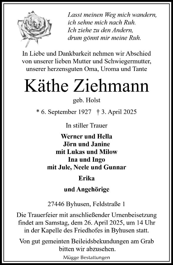 geboren am 6. September 1927 in Farven gestorben am 3. April 2025 in Bremervörde