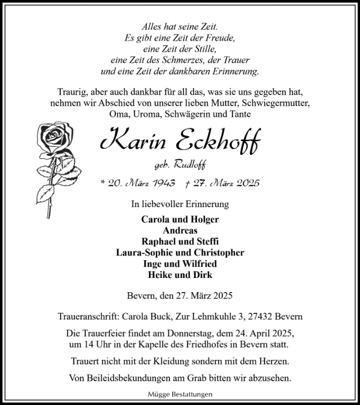 geboren am 20. März 1943 in Rachelshof Kreis Marienwerder gestorben am 27. März 2025 in Bremervörde