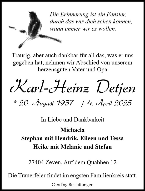 geboren am 20. August 1937 in Zeven gestorben am 4. April 2025 in Zeven