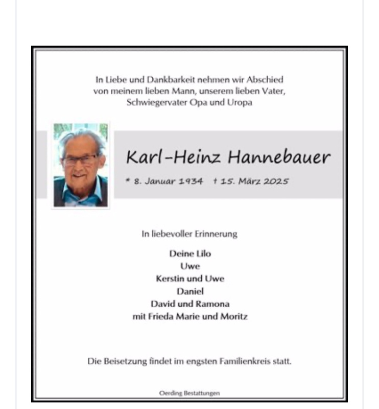 geboren am 8. Januar 1934 in Hammer, Kr. Oststernberg gestorben am 15. März 2025 in Rotenburg (Wümme)