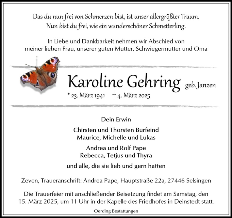 Was die Raupe Ende der Welt nennt,nennt der Rest der Welt Schmetterling.Mit tiefsten Mitgefühl für die ganze Familie