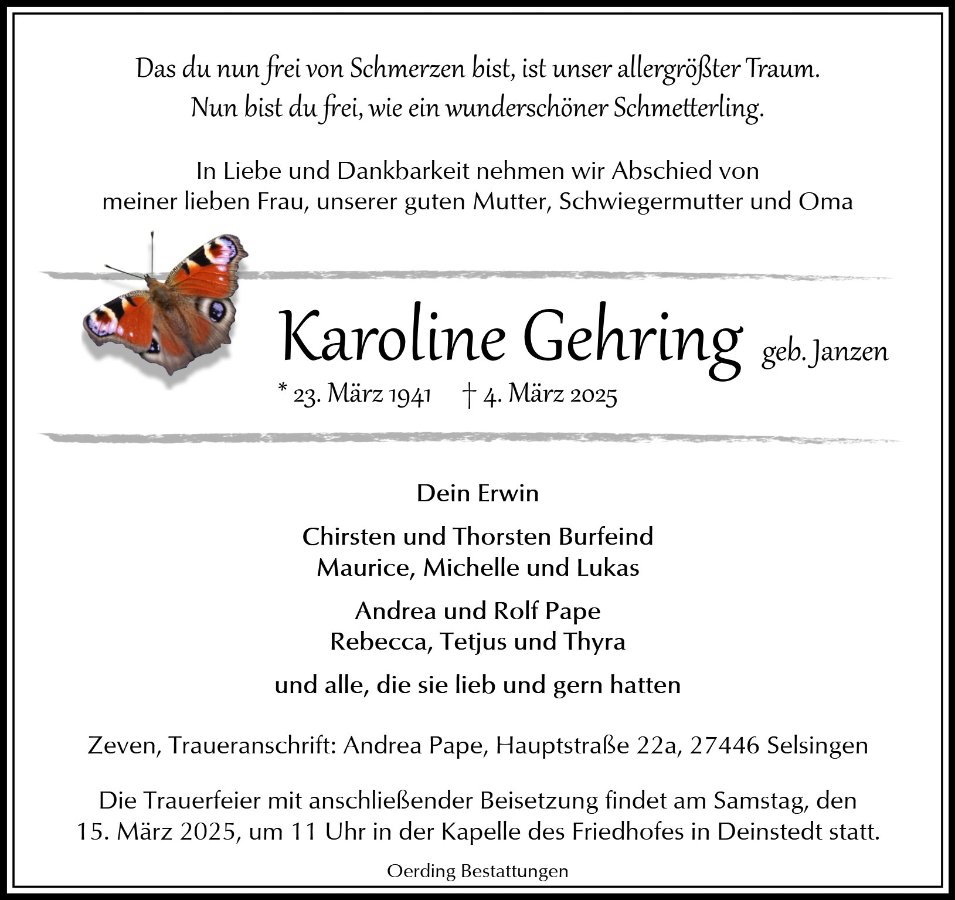 Lesen Sie hier die Anzeigen und Trauerpost!