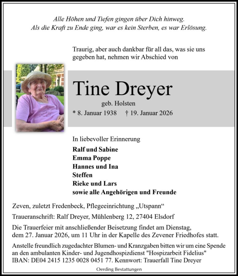 geboren am 8. Januar 1938 in Zeven gestorben am 19. Januar 2026 in Fredenbeck