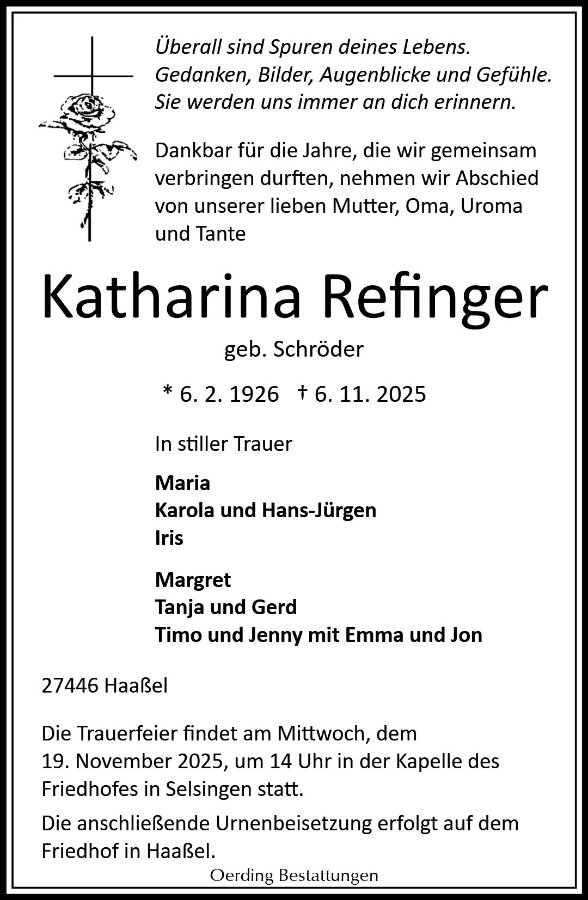 geboren am 6. Februar 1926 in Sandbostel gestorben am 6. November 2025 in Haaßel