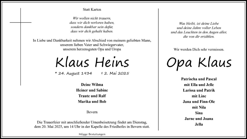 Wir werden dich immer lieben, Opa!