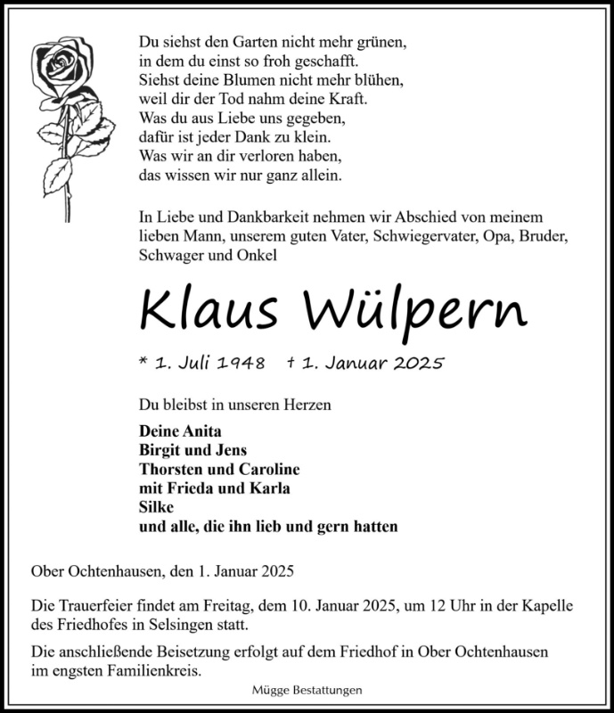 geboren am 1. Juli 1948 in Ober Ochtenhausen gestorben am 1. Januar 2025 in Gnarrenburg
