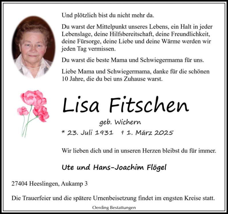 geboren am 23. Juli 1931 in Bokel, Kreis Stade gestorben am 1. März 2025 in Heeslingen