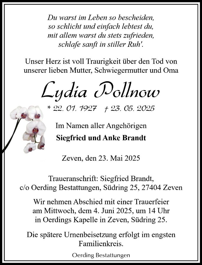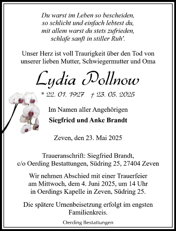 geboren am 22. Januar 1927 in Stutthof gestorben am 23. Mai 2025 in Zeven