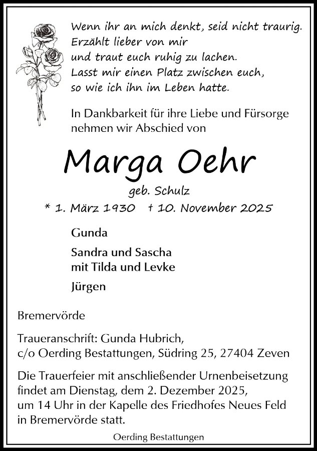 Lesen Sie hier die Anzeigen und Trauerpost!
