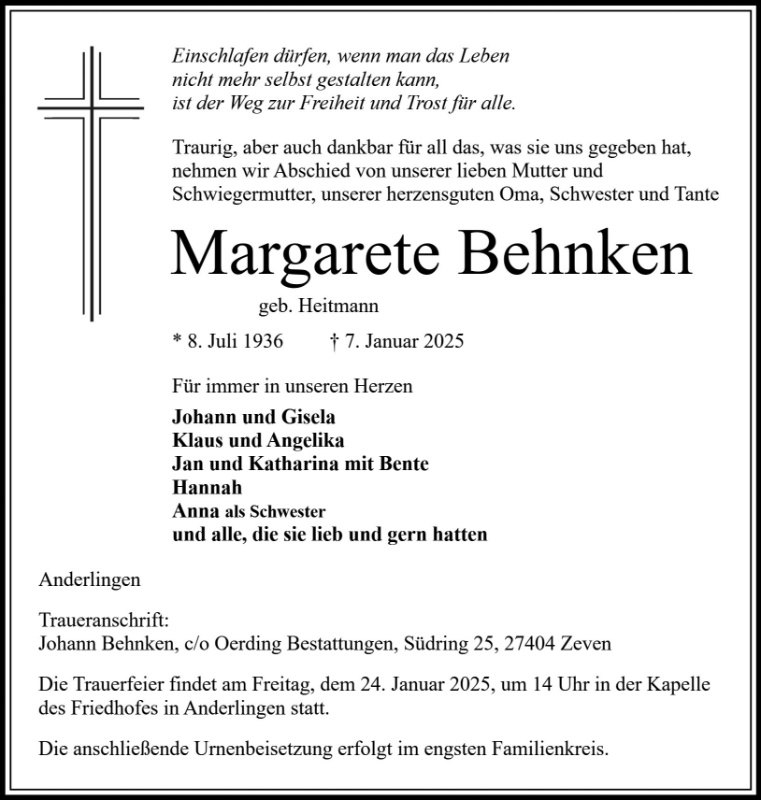 geboren am 8. Juli 1936 in Reith gestorben am 7. Januar 2025 in Bremervörde