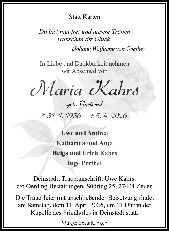 geboren am 31. Januar 1936 in Bevern gestorben am 5. April 2026 in Bremervörde