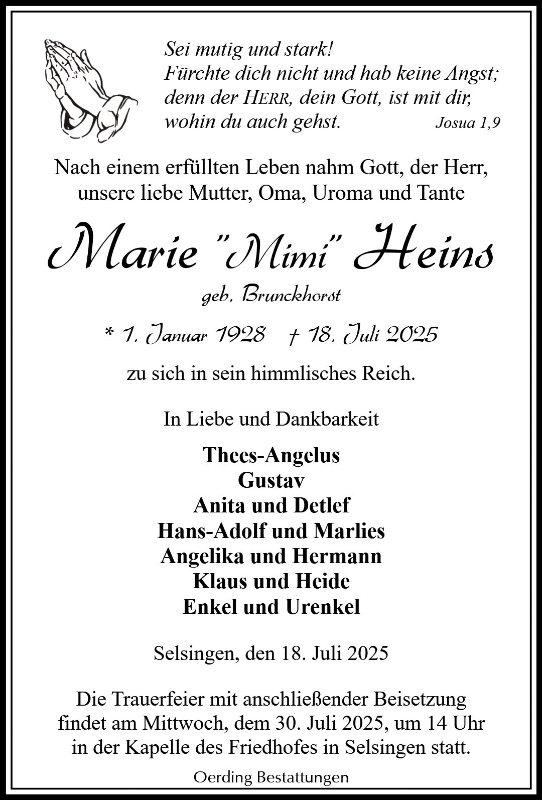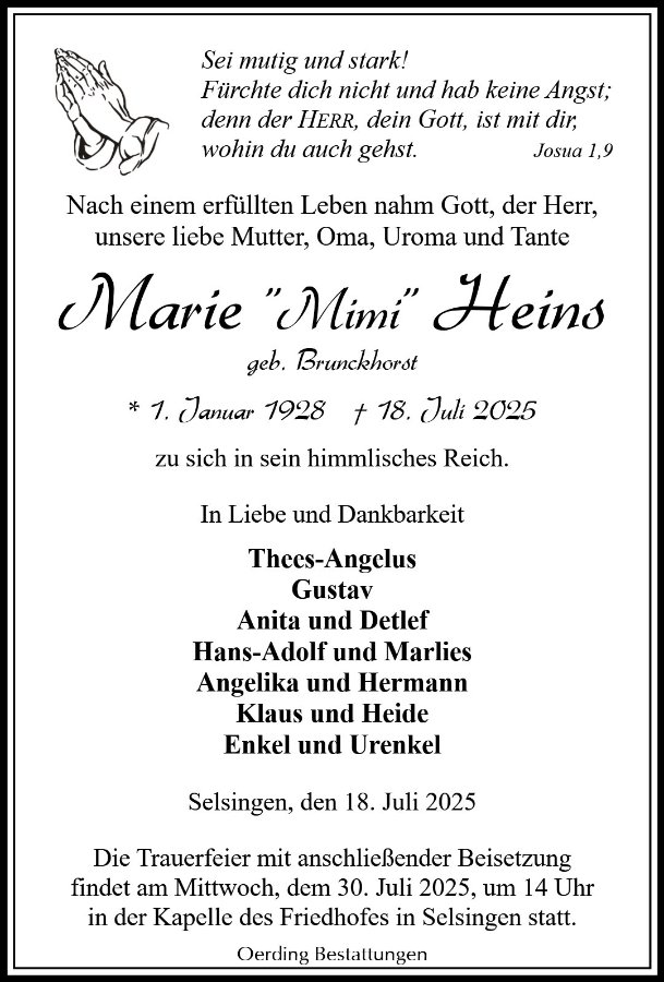 geboren am 1. Januar 1928 in Grafel-Winderswohlde gestorben am 18. Juli 2025 in Oerel