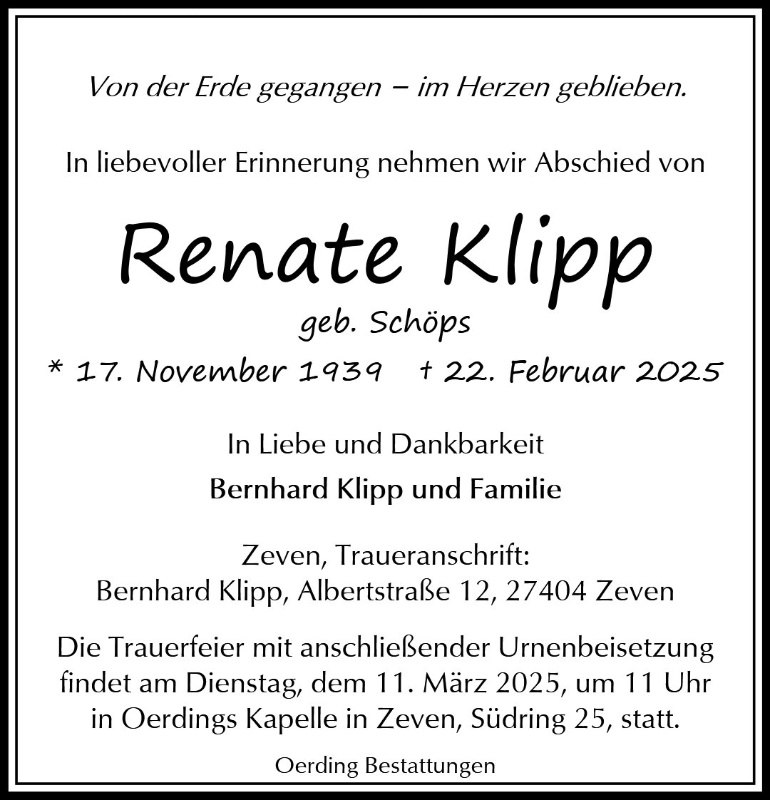 geboren am 17. November 1939 in Waldau gestorben am 22. Februar 2025 in Zeven