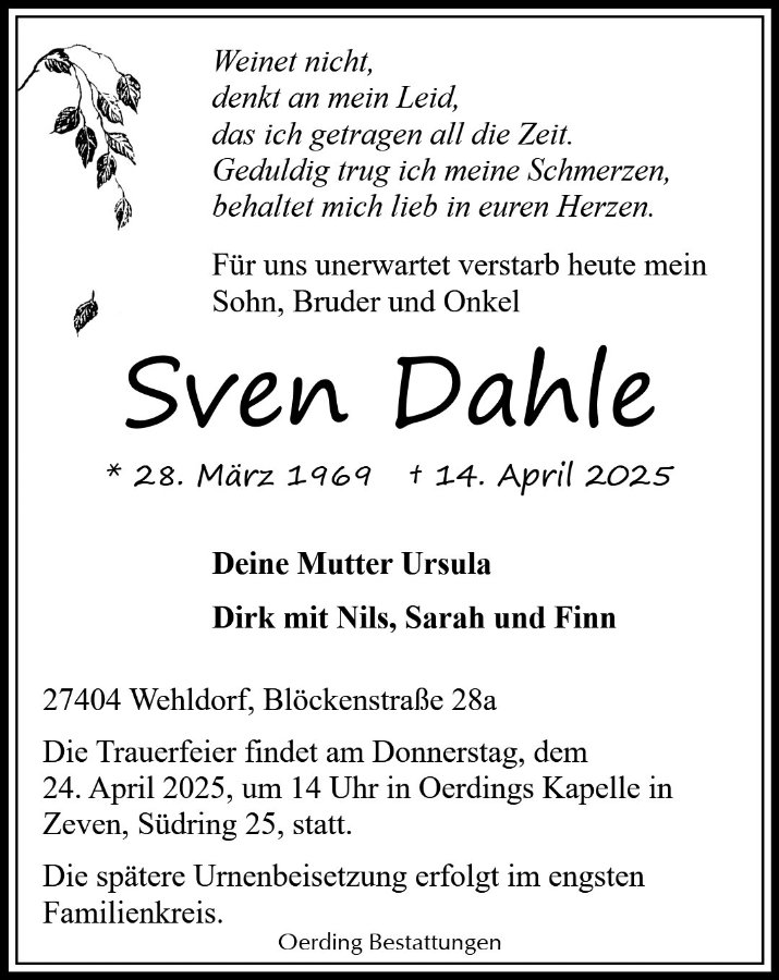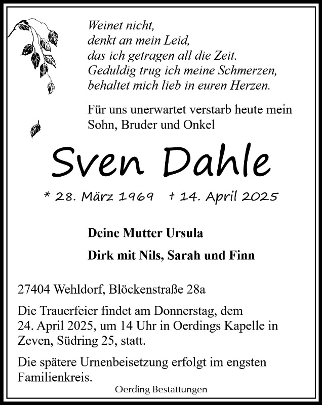 geboren am 28. März 1969 in Wolfen gestorben am 14. April 2025 in Zeven
