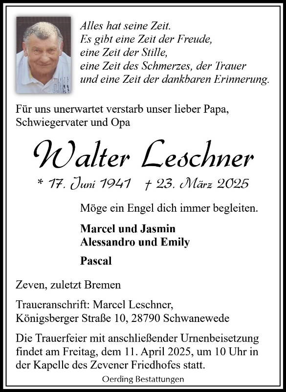 geboren am 19. Juni 1941 in Schlusau gestorben am 23. März 2025 in Bremen