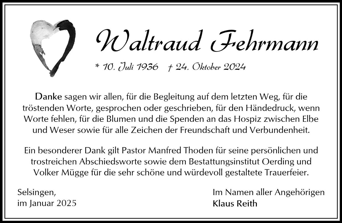 geboren am 10. Juli 1936 in Gramenz Kreis Bütow gestorben am 24. Oktober 2024 in Rotenburg (Wümme)