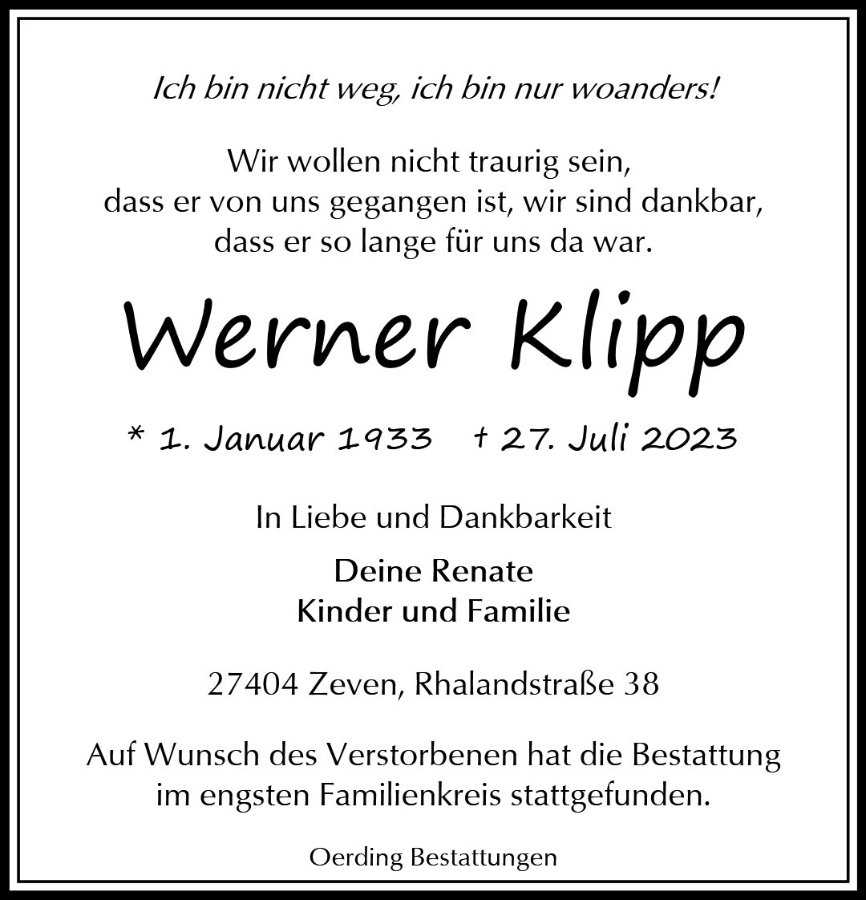 Wir werden Werner immer in unserem Herzen tragen.